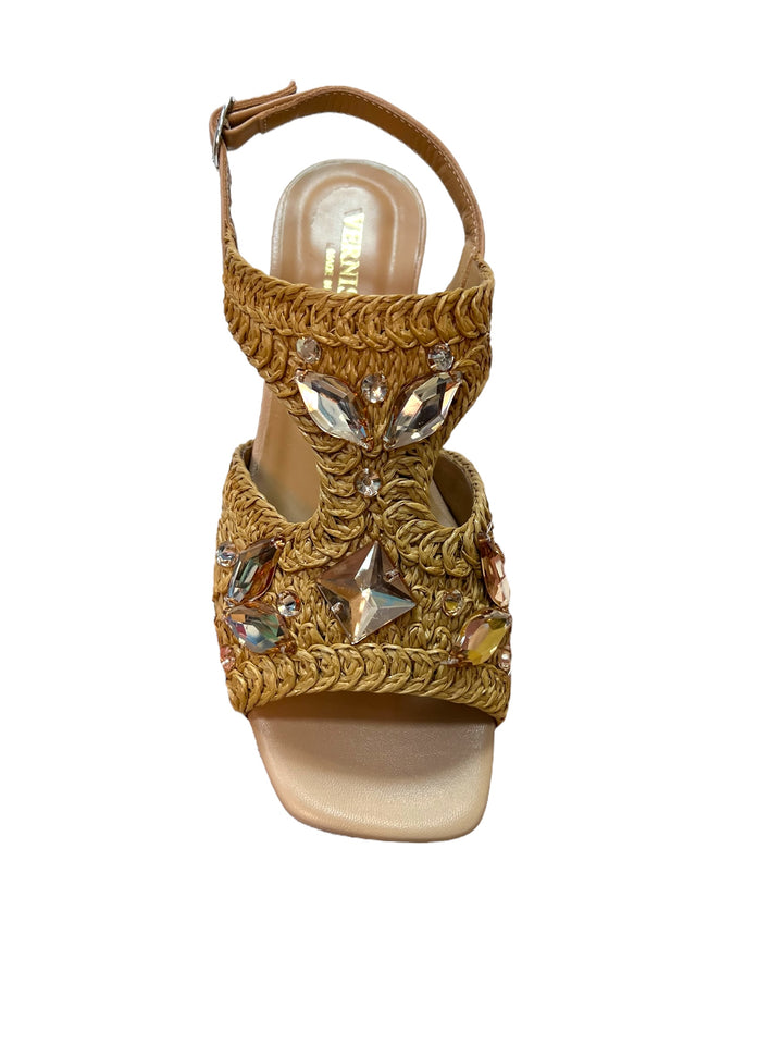 Sandali confort in rafia impreziositi da dettagli strass in tinta sulla tomaia.